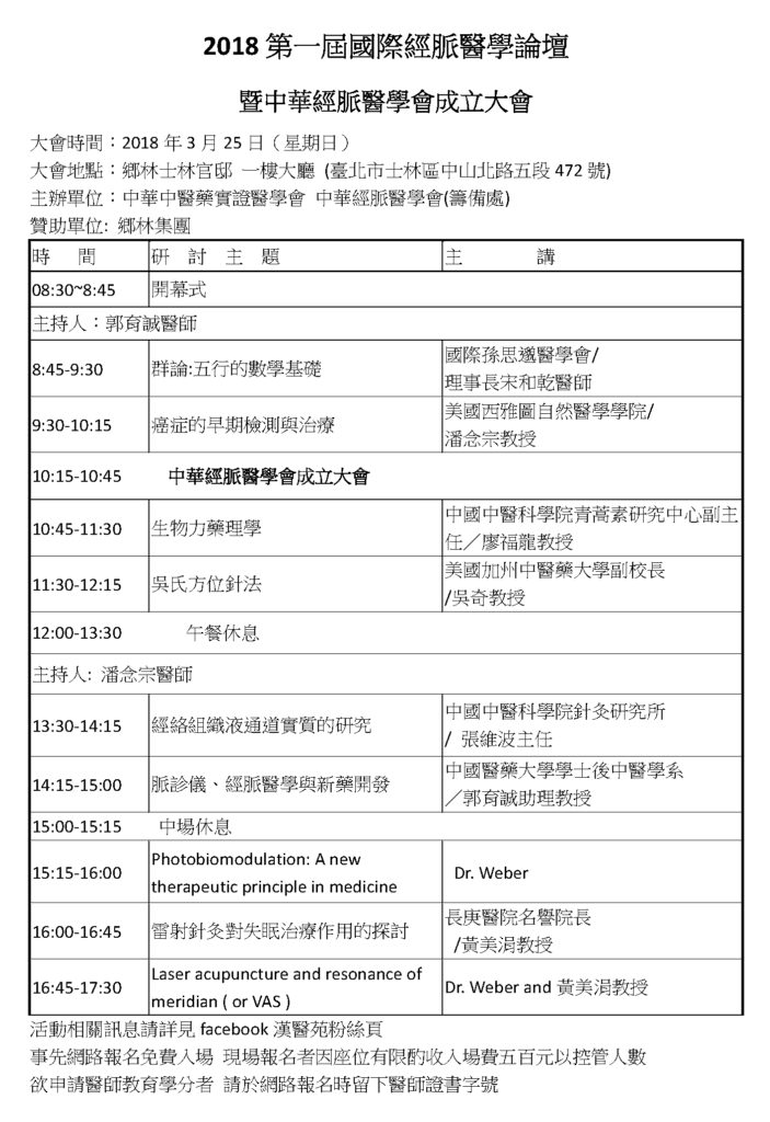 第一屆國際經脈醫學論壇 – 2018.3.25.