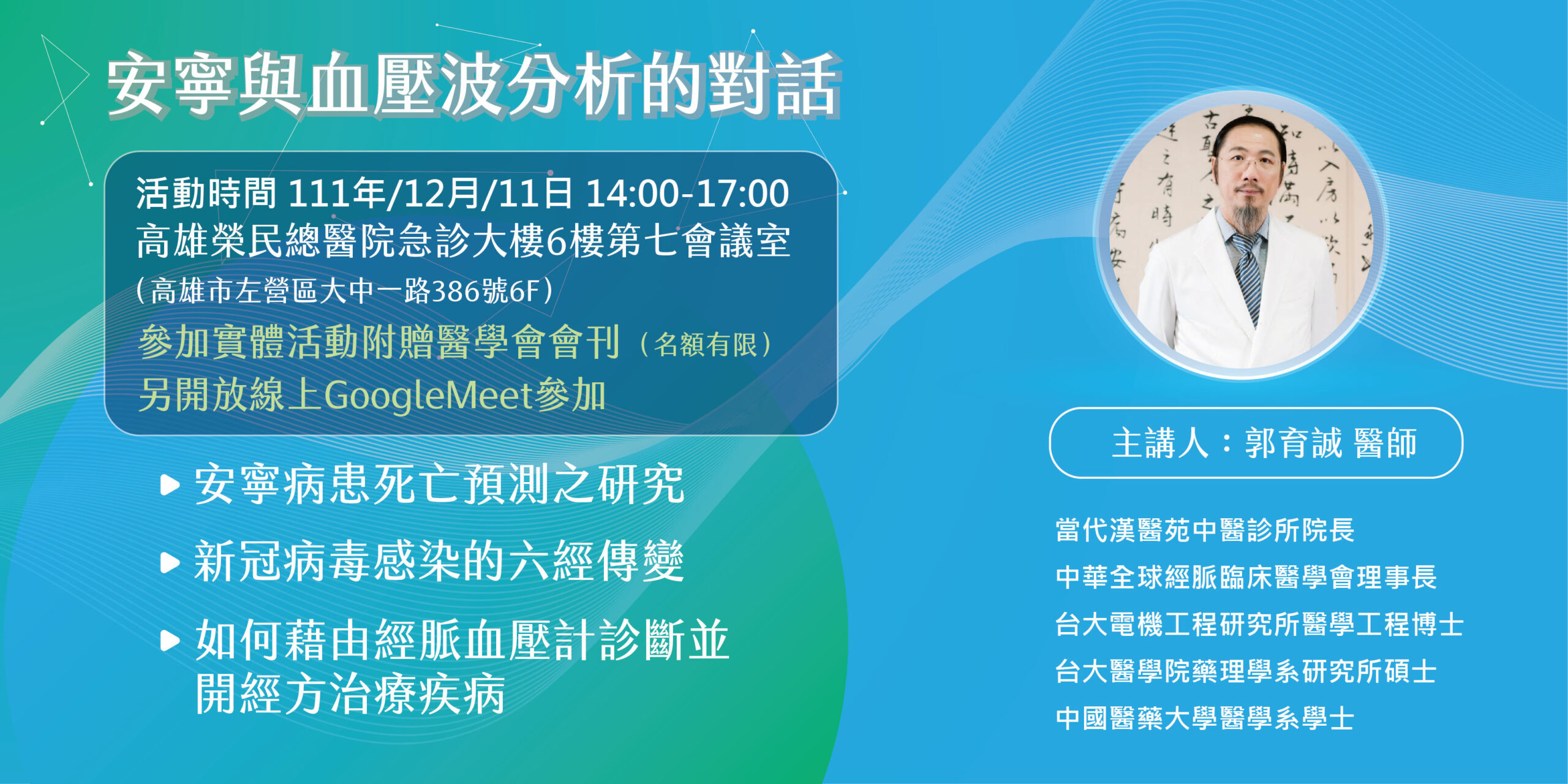 2022/12/11日(日) 『高雄榮民總醫院』與『中華全球經脈臨床醫學會』 共同舉辦免費…
